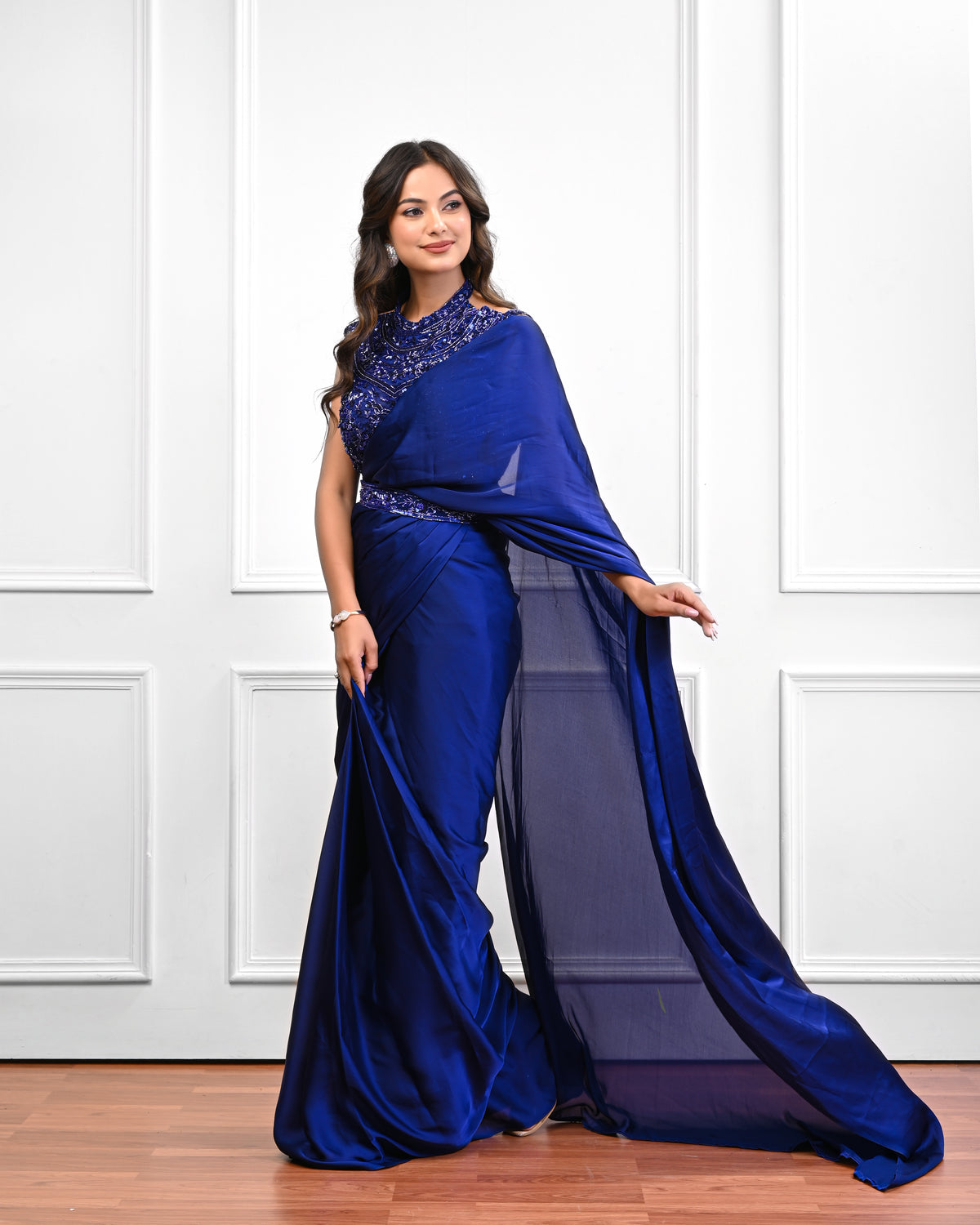Electric blue satin pre draped saree – Cholis Jaipur index