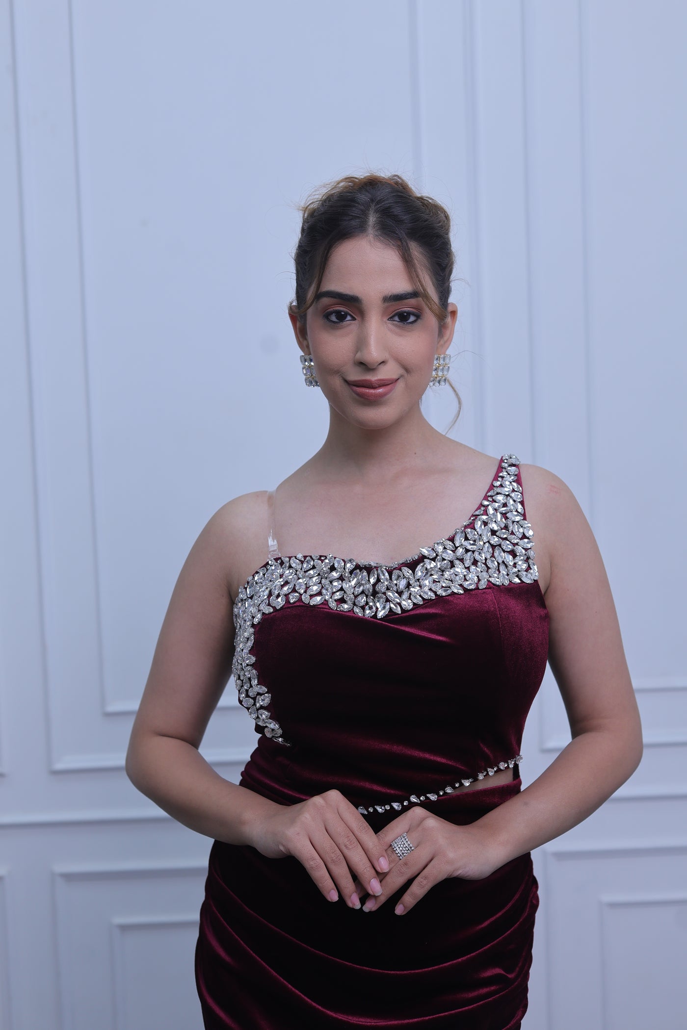 Gracefully luminous and effortlessly elegant, the Crystal Cocktail Gown is designed for moments that deserve a little extra sparkle. Delicately adorned with hand-placed crystals, it glows softly, creating a refined shimmer rather than overpowering shine.