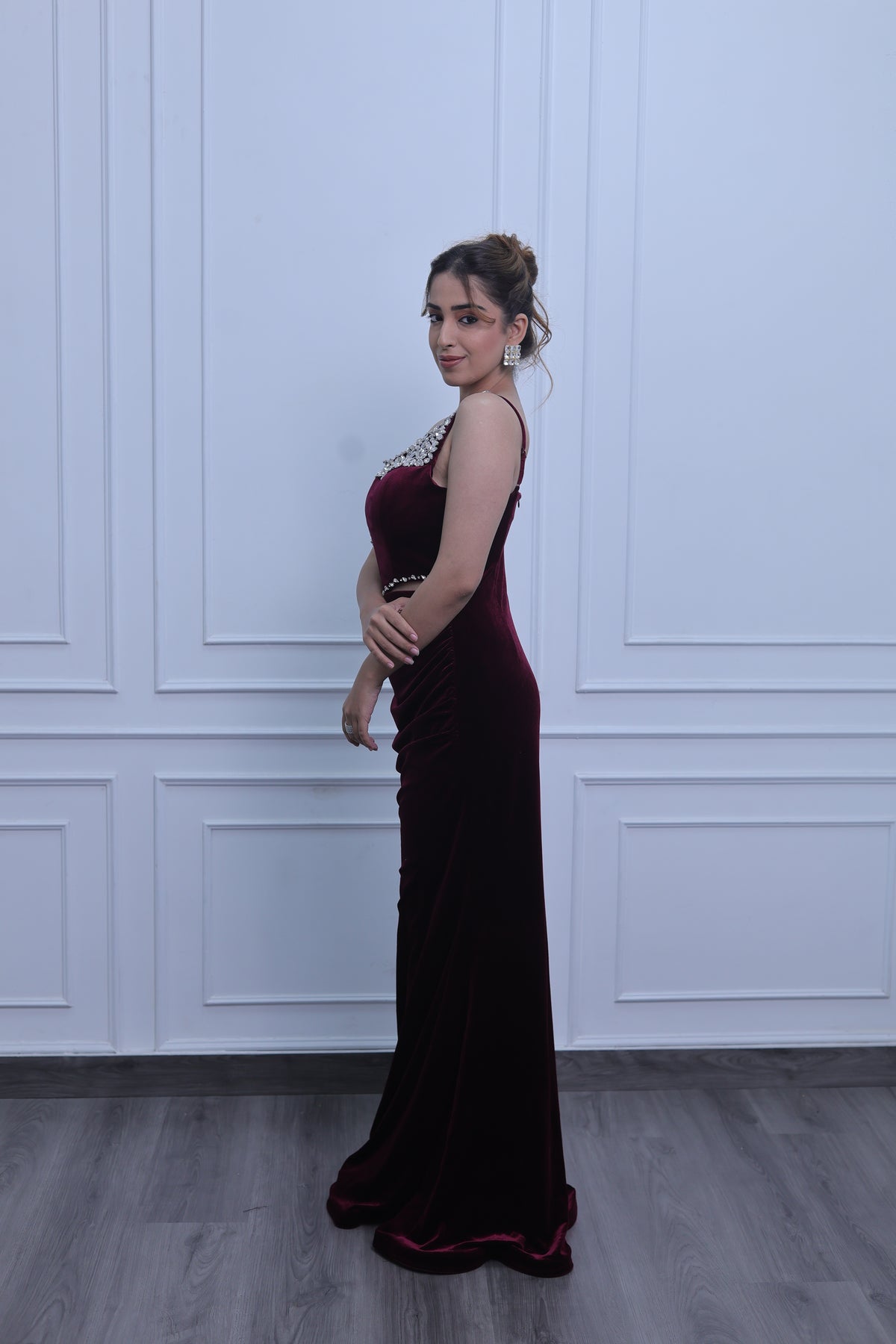Perfect for intimate celebrations, cocktail evenings, and special occasions, this gown captures the beauty of understated glamour with timeless charm.