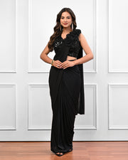 Black flower patch work predraped saree
